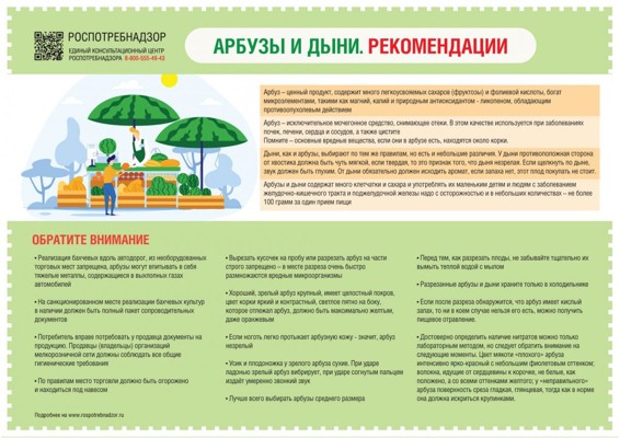«На санкционированном месте реализации бахчевых культур в наличии должен быть полный пакет сопроводительных документов, подтверждающий качество и безопасность бахчевых культур (сертификат или декларация о соответствии, удостоверение о качестве, выданное организацией, вырастившей арбузы); у продавца должна быть на рабочем месте информация о юридическом лице, реализующем арбузы, вывеска с указанием времени работы, весы, продажа бахчевых культур осуществляется при наличии ценников с информацией о наименовании товара и его стоимости», — сообщили в Управлении и добавили, что потребитель вправе потребовать у продавца документы на продукцию.