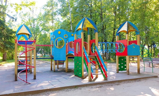 Покраску детского многофункционального комплекса в сквере Пушкина обновили
