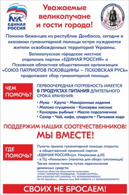 Сергей Макаров рассказал, что на данный момент существует первоочередная потребность в продуктах питания длительного хранения. Необходимы мука, крупы, макароны, сгущённое молоко, рыбные и мясные консервы, подсолнечное масло, чай, сахар, кофе, сладости и питьевая вода.