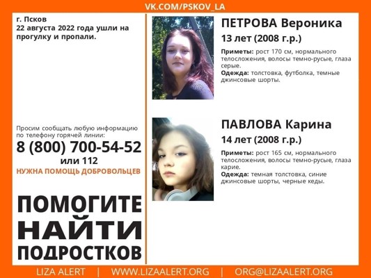 0Как сообщили Луки.ру в региональном поисковом отряде «Лиза Алерт», девочкам 13 и 14 лет.