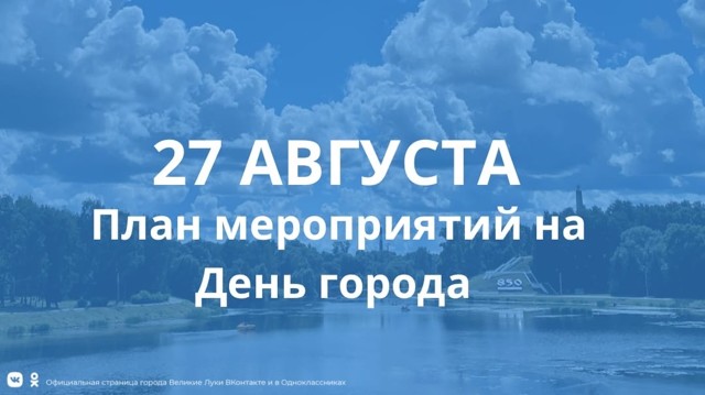 • 11:00 — 12:00 — «К своим истокам прикоснись!» — церемония открытия Дня города Великие Луки, награждение великолучан благодарностями Главы города Великие Луки, колокольный звон, яблочный пирог — Площадь Вознесения