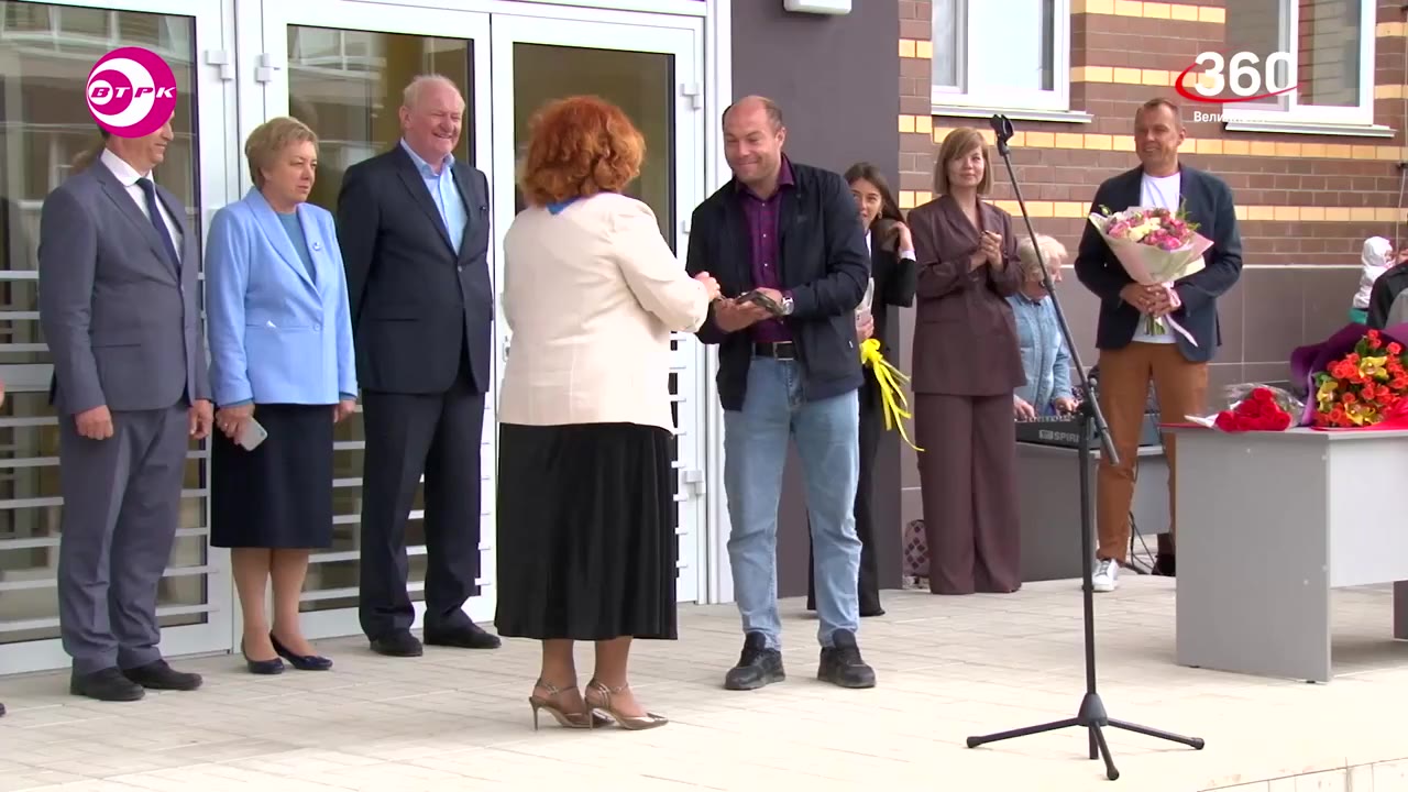 В рамках торжественной церемонии руководитель строительной компании вручил директору инженерно-экономического лицея Юлии Ярышкиной символический ключ от школы.