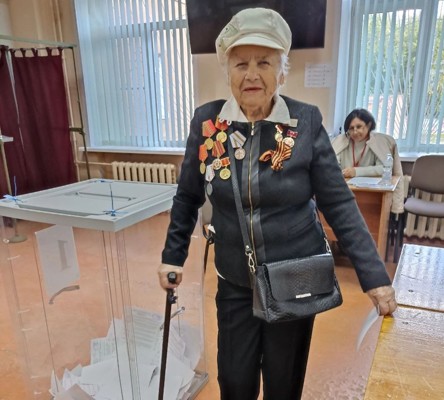 92-летняя великолучанка проголосовала на избирательном участке № 105