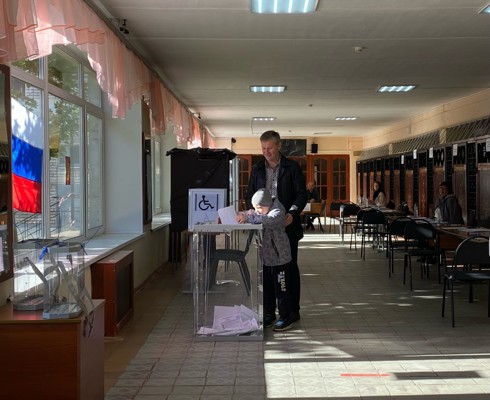 0Общественник пришел на избирательный участок не один, а вместе со своим сыном.