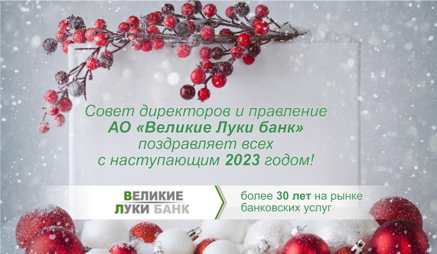 АО «Великие Луки банк» поздравляет с наступающим 2023 годом и Рождеством!
