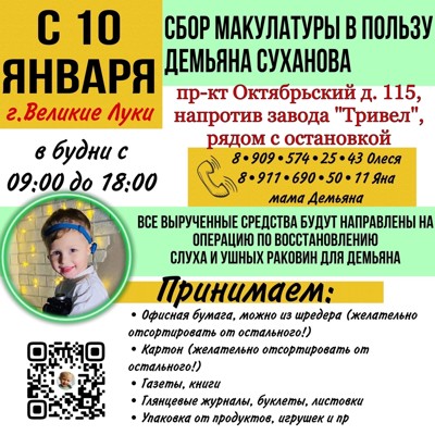 В Великих Луках объявлен сбор макулатуры в пользу Демьяна Суханова
