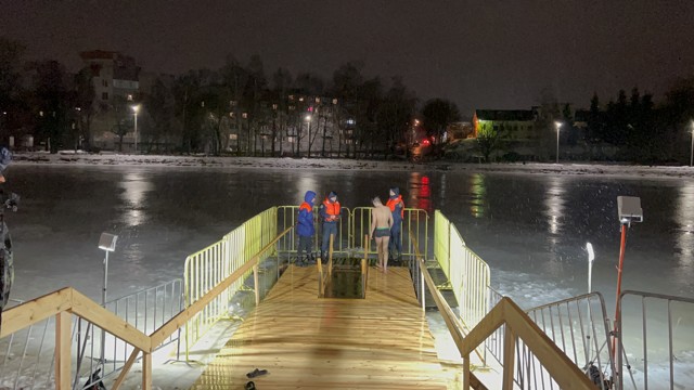 0 5 фотоТрадиционная Крещенская купель на Ловати с ограждением, безопасными деревянными сходнями и настилами для подхода и выхода из нее, была подготовлена накануне праздника Администрацией города Великие Луки. На месте проведения Крещенских купаний установлено дополнительное освещение, палатки с обогревом, а также организована раздача горячего чая.