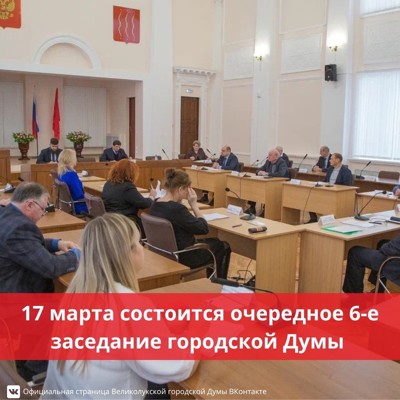 17 марта состоится очередное 6-е заседание Великолукской городской Думы