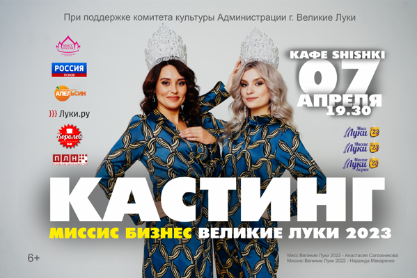 Сам кастинг участниц на фестиваль «Мисс/Миссис Великие Луки 2023» состоится 7 апреля в 19:30 в кафе SHISHKI.