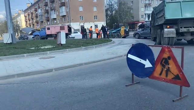 Фотофакт: В Великих Луках на круговом движении ведутся ремонтные работы