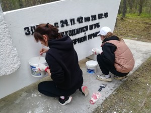 Волонтеры очистили территории от старой листвы, покрасили памятный знак, обустроили места стоянки.
