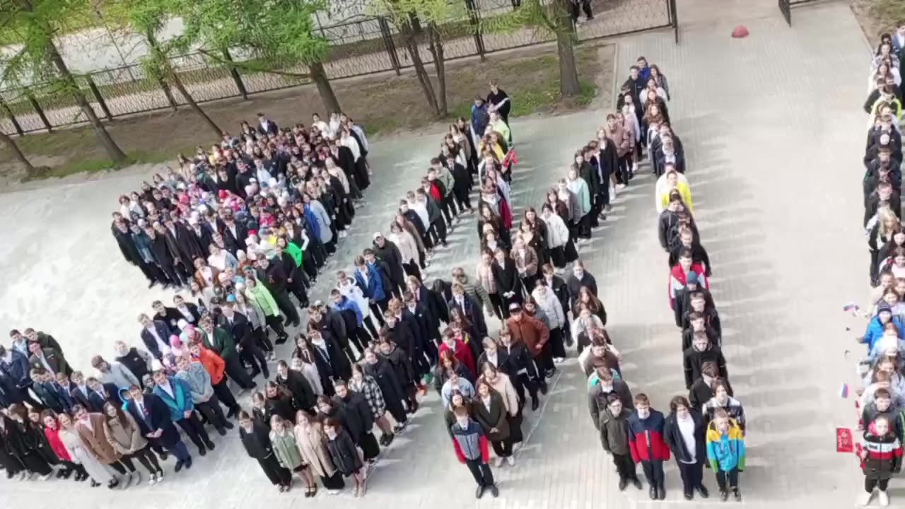 0 видеоРебята выстроились в виде надписи «9 мая». В организации и проведении флешмоба принимали участие порядка 700 учеников. Собравшиеся в школьном дворе спели песню «День Победы».