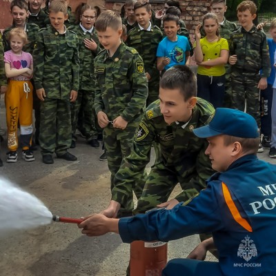 0 4 фотоСпециалисты рассказали об основных причинах возгораний, объяснили, как нужно действовать в случае возникновения пожара и научили ребят применять первичные средства пожаротушения.