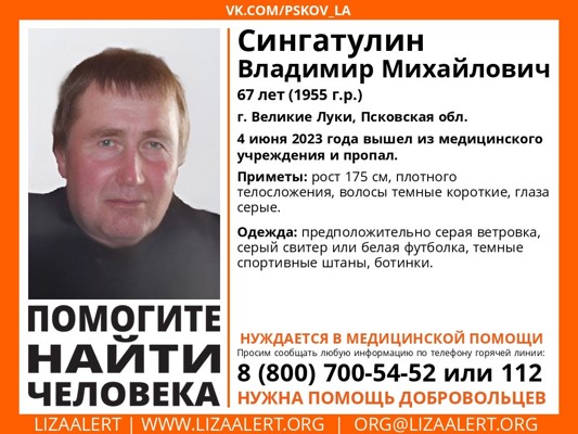 04 июня он вышел из медицинского учреждения и пропал.