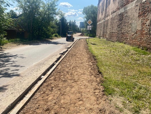 В Великих Луках на улице Лермонтова идет ремонт тротуара