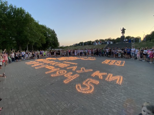 0 6 фотоНесколько тысяч свечей слились в единую картину. В этом году инсталляция включала в себя Орден Отечественной войны, георгиевскую ленту, годы войны и название нашего города.