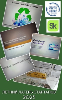 В летнем лагере стартапов также представляют свои проекты: Ксения Сергеева (проект «Пластик с пользой для города»), Юрий Мельников (проект «Минизавод по переработке полиэтилена») и Валентин Никандров (проект «MealMaster»).