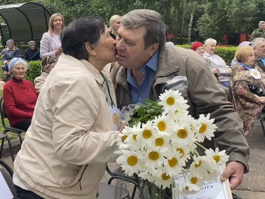 В завершении праздника им вручили подарки: букет ромашек, как символ праздника, и зонт, чтобы он защищал от любых ненастий.