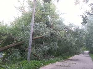 В группах ВКонтакте, посвященных жизни Великих Лук, горожане поделились фотографиями последствий непогоды. Устранением упавших деревьев занимается МП «Зеленхоз».