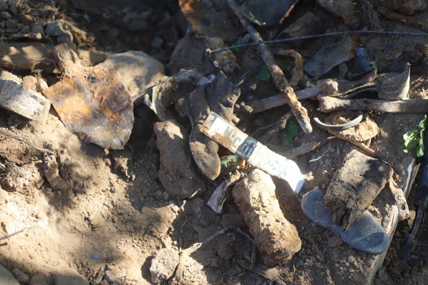 «Как нам удалось узнать, найденные останки предположительно принадлежат советскому воину. Были обнаружены бедренная кость и кости голени, форменные ботинки, ствол, часть приклада «трехлинейки» выпуска 1937 года, остатки противогаза, лопаты и, кроме того, немецкая металлическая эмалированная табличка «Nictraucher». По данным сети интернет такие таблички вешались на немецкие железнодорожные вагоны для некурящих, а железнодорожная станция совсем рядом. Также найдены и немецкие гильзы калибра 7,92»,— рассказали в сообществе районного издания.