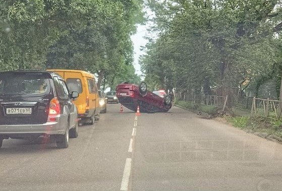 В Великих Луках автомобиль перевернулся на крышу