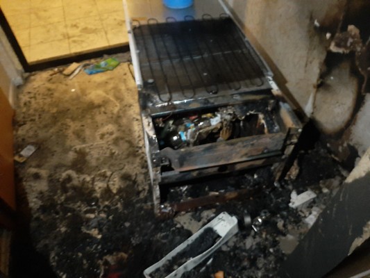 0 4 фотоПредположительная причина пожара — короткое замыкание электропроводки в холодильнике. Проводится проверка. Никто не пострадал.