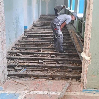 0На текущий момент выполнены следующие работы: демонтаж шведских перегородок и экранов радиаторов; замена деревянных окон коридора и спортзала на ПВХ-блоки. Обновлено не только освещение, но и произведён капитальный ремонт всей электросистемы комплекса спортзала. Заменён на современные материалы пол, специальный лак и яркая разметка создают неповторимый и интересный антураж.