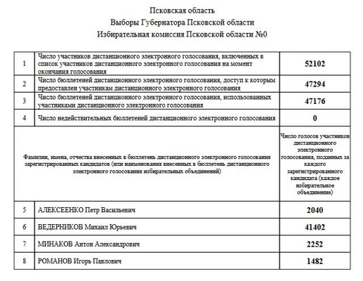 Стали известны результаты голосования ДЭГ на выборах Губернатора Псковской области