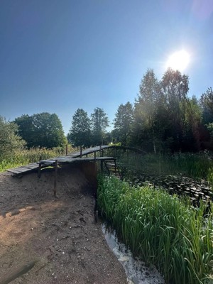 0В результате проверки, проведенной Псковской природоохранной межрайонной прокуратурой совместно с представителем Комитета по природным ресурсам и экологии Псковской области было установлено, что напротив земельного участка, принадлежащего местному жителю в деревне Пирогово Великолукского района, на металлических трубах, вбитых в дно реки Раслица настелен деревянный настил, что образует мост между её берегами.