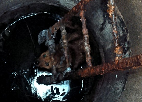 В Великих Луках пожарные спасли собаку, которая провалилась в люк