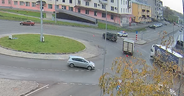 В Великих Луках на круговом движении столкнулись легковушка и грузовик