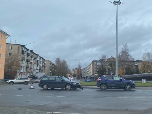 В Великих Луках на круговом перекрестке столкнулись два легковых автомобиля