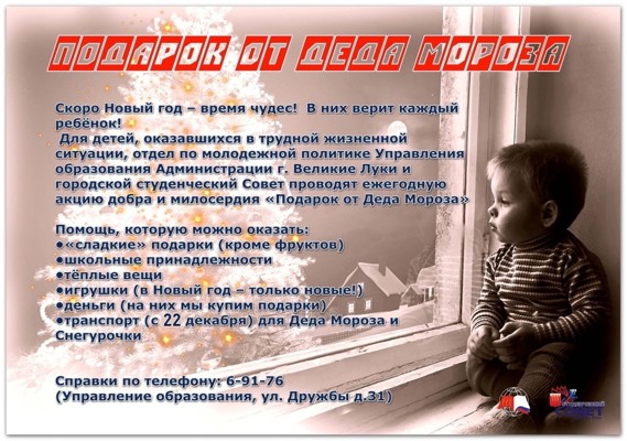 В Великих Луках стартовала акция «Подарок от Деда Мороза» (0+)