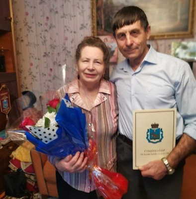 01 декабря 1973 года юбиляры зарегистрировали свой брак в бюро ЗАГС Куньинского района Псковской области. Владимир Васильевич всю свою жизнь работал участковым в поселке, Галина Васильевна в налоговой инспекции и пенсионном фонде. Супруги воспитали двух сыновей, помогали в воспитании внука.
