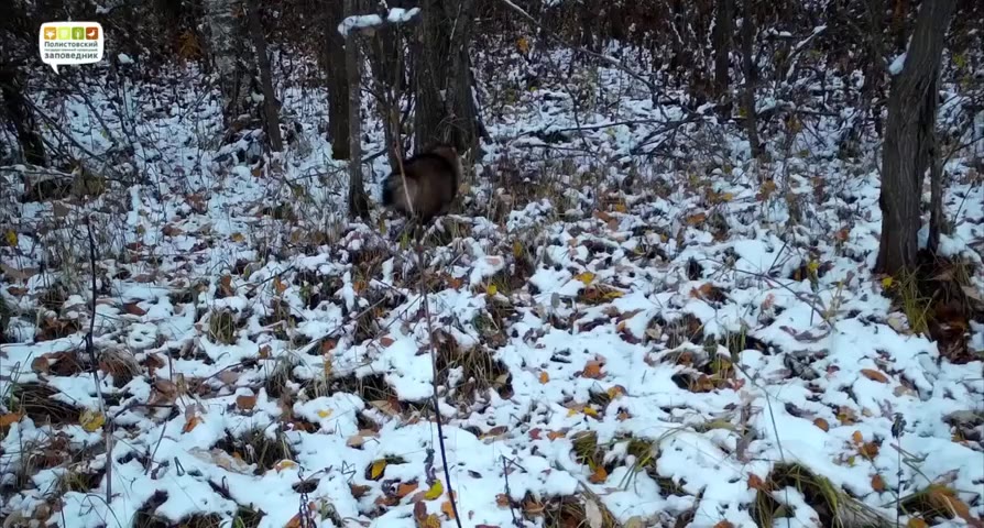 Полистовский заповедник опубликовал запись с фотоловушки, которая запечатлела енотовидную собаку