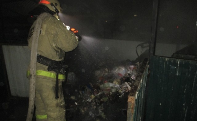 В Великих Луках 4 человека тушили мусорный контейнер