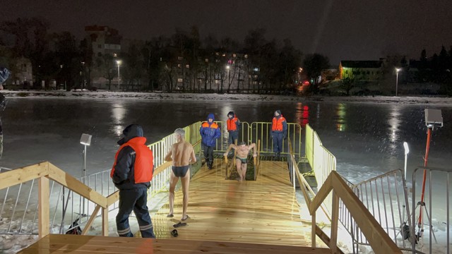 Во время купаний будет организовано дежурство сотрудников спасательных служб, полиции. Также будут установлены палатки для переодевания граждан.