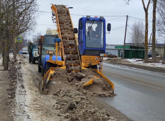 Фотофакт: В Великих Луках убирают снежный вал на дорогах