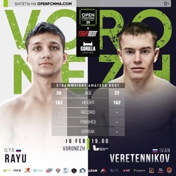 Великолучанин Иван Веретенников проведет поединок по любительским правилам против бойца из Воронежа Ильи Рая. Поединок пройдет в минимальном весе по правилам Союза ММА России.