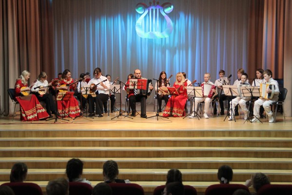 0Народный коллектив ансамбль русских народных инструментов «Забава» и учащиеся школы познакомили зрителей с традиционными русскими народными музыкальными инструментами: свистульки, ложки, трещотки, гармони, балалайки, домры, баян.
