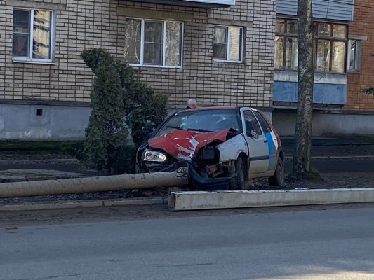 На проспекте Гагарина разноцветная легковушка сбила столб