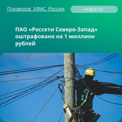 ПАО «Россети Северо-Запад» оштрафовано на 1 миллион рублей за неисполнение своих обязательств. Стоит отменить, что в процессе рассмотрения дела выполнено 9 техприсоединений домовладений к электросетям.