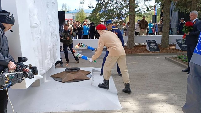 В Острове зажгли Вечный огонь у Мемориала на площади имени Героя СССР Назаровой