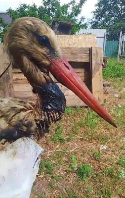Попавший в огромную яму с креозотом в Локнянском районе аист не выжил
