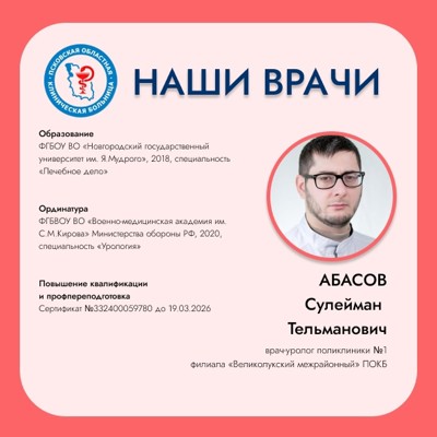 Сулейман Тельманович занимается диагностикой и лечением заболеваний мочевыделительной системы, а также репродуктивной системы у мужчин. Врач ведет прием ежедневно с 16:00 до 18:00.