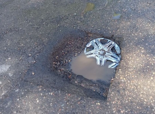 Великолучане оставляют колпаки от колес в ямах на улице Запрудной