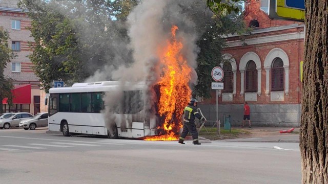 В центре Великих Лук горел рейсовый автобус