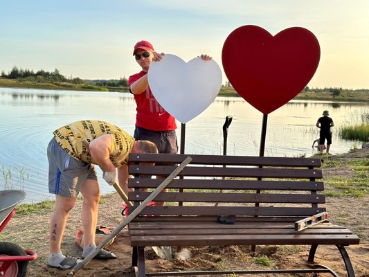 0 4 фотоИнициативные жители установили скамейку с сердцами. «Теперь на берегу озера можно комфортно фотографироваться на фоне наших красивейших закатов», — написала Ольга Федосеенко.