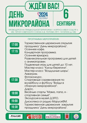 День микрорайона пройдет на пришкольной территории школы №6 (0+)