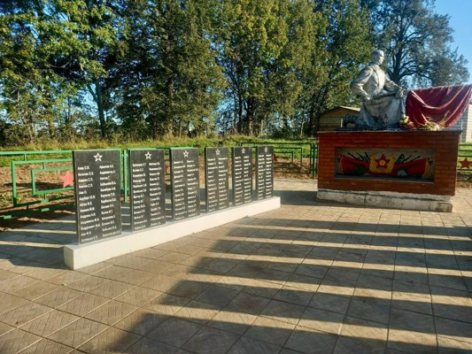 0На воинском захоронении в деревне Молоди установлено металлическое ограждение, уложена тротуарная плитка, обновлен памятник солдату, произведена замена мемориальных плит.